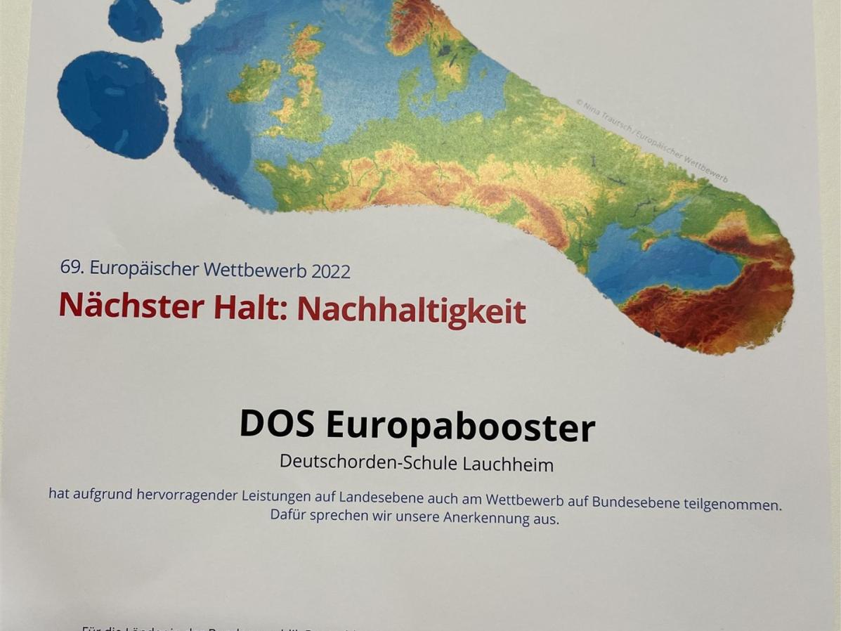 Dieses Jahr konnte die Deutschorden-Schule Lauchheim trotz Corona-Bedingungen ein Projekt einreichen, das von insgesamt 36 Schüler und Schülerinnen erstellt wurde. Das diesjährige Thema war „Nächster Halt – Nachhaltigkeit“. Dazu erstellten die Schüler und Schülerinnen der Klasse 8b in einem Stop-Motion-Video ein Europalied, dessen Gesangsstimmenvom Chor der Klassen 4a und b eingesungen wurden.