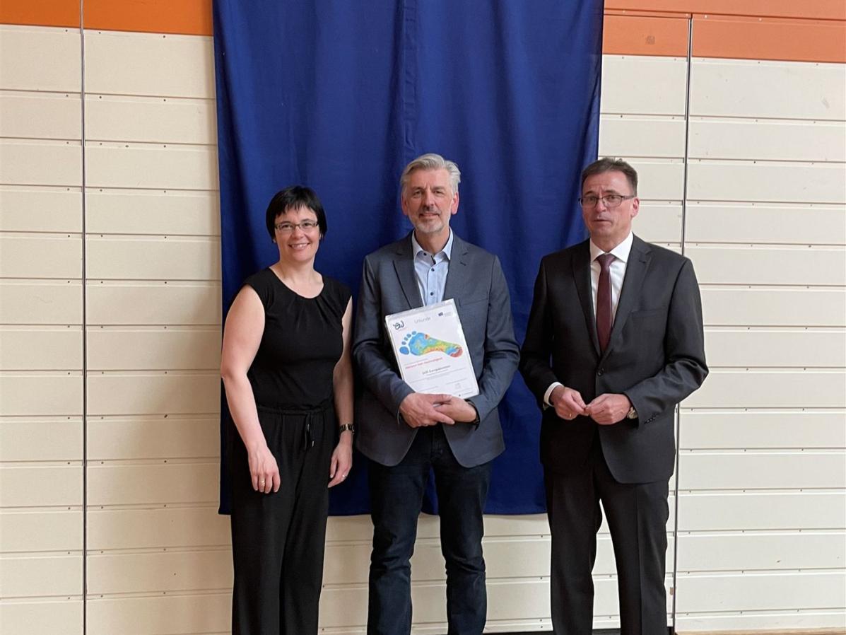 Neu hinzu kam im Vorfeld eine Umfrage über die Online-Lernplattform der Schule, bei der die Schülerinnen und Schüler auf die jeweils „rundenstärkste Klasse“ der Grund- und Sekundarstufe tippen konnten. Auch wurde für diese Klassen ein Wanderpokal in Aussicht gestellt, welcher im Anschluss an die Aktion von der Schulleiterin Frau Gehringer festlich überreicht wurde. Mit dabei waren sowohl für die Siegerklassen als auch die beiden Schüler mit den insgesamt am meisten gelaufenen Runden Preise in Form von leckerem Eis.